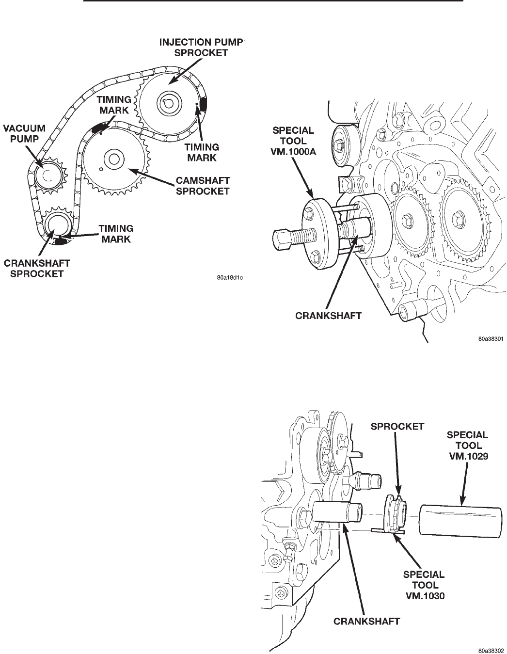 (7) Install crankshaft sprocket remover VM.1000A
